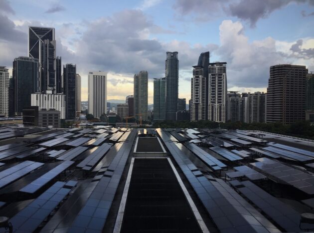 Veterné turbíny a solárne panely sa na strechách výškových budov môžu výborne dopĺňať. Keď slnko zapadne a panely prestanú vyrábať, vietor často zosilnie. Takáto synergická kombinácia dokáže zabezpečiť dodávku energie počas celého dňa.